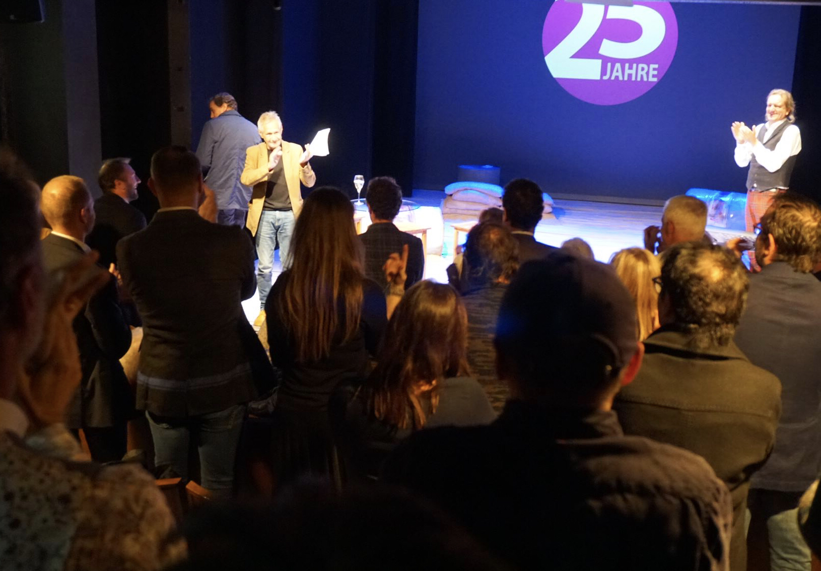 Christine Lasta, die seit Anfang mit dabei war und Markus Linder, der bekannte Musiker, Kabarettist und Schauspieler, führten durch den Abend.