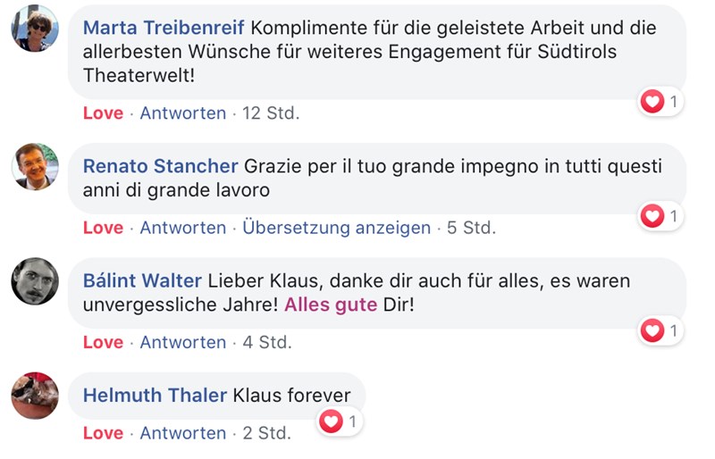 Derzeit befindet sich die Theaterwelt in unserer Stadt im Umbruch. Ich bin sehr zuversichtlich, dass der zukünftige Weg, alle Bühnen im Kolpinghaus unter einem Dach zu vereinen, für alle Beteiligten von Erfolg gekrönt sein wird. Damit schlägt sich sprichwörtlich ein neues Kapitel im Kulturleben Brunecks auf.