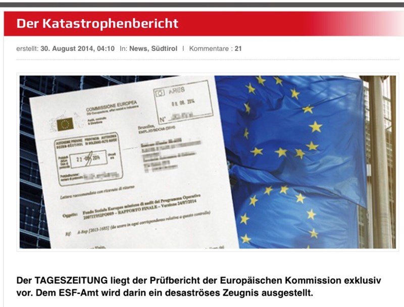 Der stumpfsinnige und jeder Logik entbehrende Bürokratieterror des ESF-Amtes ist verantwortlich, dass unseren Mitarbeitern Gehälter nicht ausbezahlt werden können und dass Lieferanten und Vermieter zu Recht protestieren, weil sie nicht zu ihrem Geld kommen. Und es ist nur allzu verständlich, dass sich bei den Betroffenen immer mehr die Vermutung breitmacht, dass das ewige hinausschieben der Kontrollen eigentlich nur Taktik sein kann, um andere tatsächliche Unregelmäßigkeiten im damaligen ESF-Amt Bozen zu vertuschen und die dafür Verantwortlichen in eine strafrechtliche Verjährung zu retten.